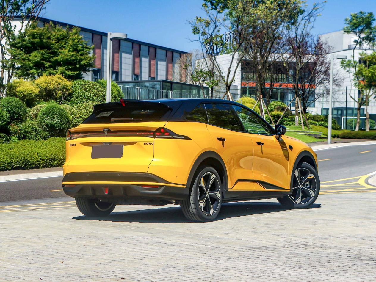 深蓝S07长续航版的外观没有改动,依然是有棱有角的设计风格,视觉感受上较为犀利,比较符合年轻人的审美,标配19英寸轮胎,尾灯也是贯穿式设计;车身尺寸方面,深蓝S07轴距2900mm,车长4750mm,宽度1930mm,高度1625mm。